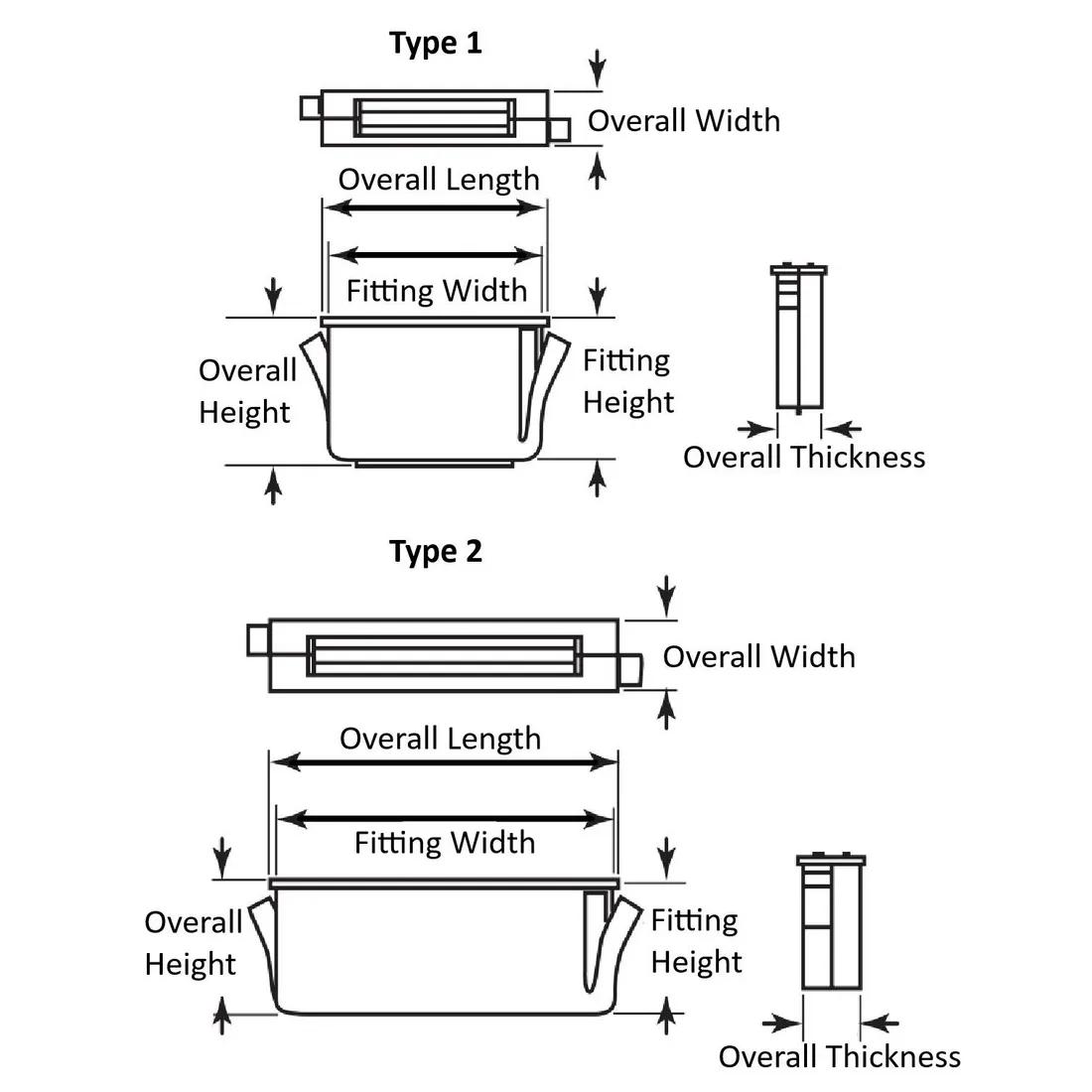 Item Code | Color | Catch Mechanism | Material | Overall Width | Fitting Width | Maximum Panel Thickness | Minimum Panel Thickness | Overall Height | Type | Mount Type | Overall Length | Case Material | Request Quote |