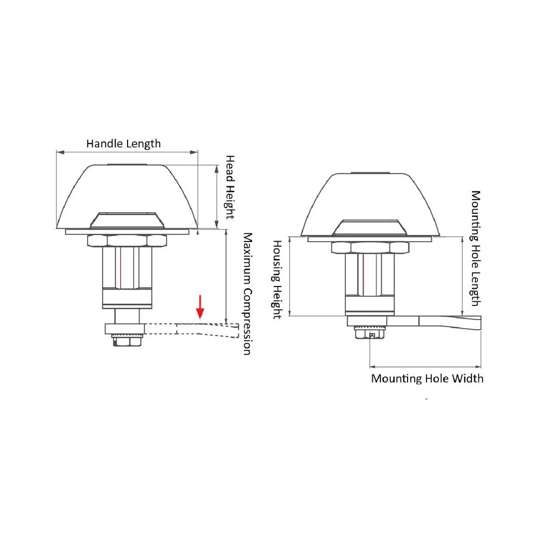 Item Code | Cam Material | Color | Housing Height | Knob Material | Maximum Panel Thickness | Head Height | Maximum Compression | Gasket Material | Finish | Key Type | Mounting Hole Length | Mounting Orientation | Housing Material | Handle Type | Mounting Hole Width | Handle Length | Latch Style | Coating | Seal Material | Latch Material | Handle Height | Request Quote |