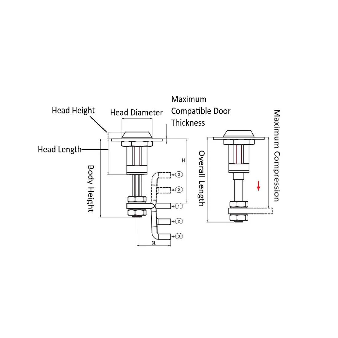 Item Code | Cam Material | Color | Overall Length | Head Diameter | Head Height | Maximum Compression | Finish | Key Type | Head Style | Latch Style | Mounting Orientation | Housing Material | Handle Type | Mounting Hole Width | Maximum Compatible Door Thickness | Washer Material | Coating | Mounting Hole Length | Driver Material | Minimum Grip | Request Quote |