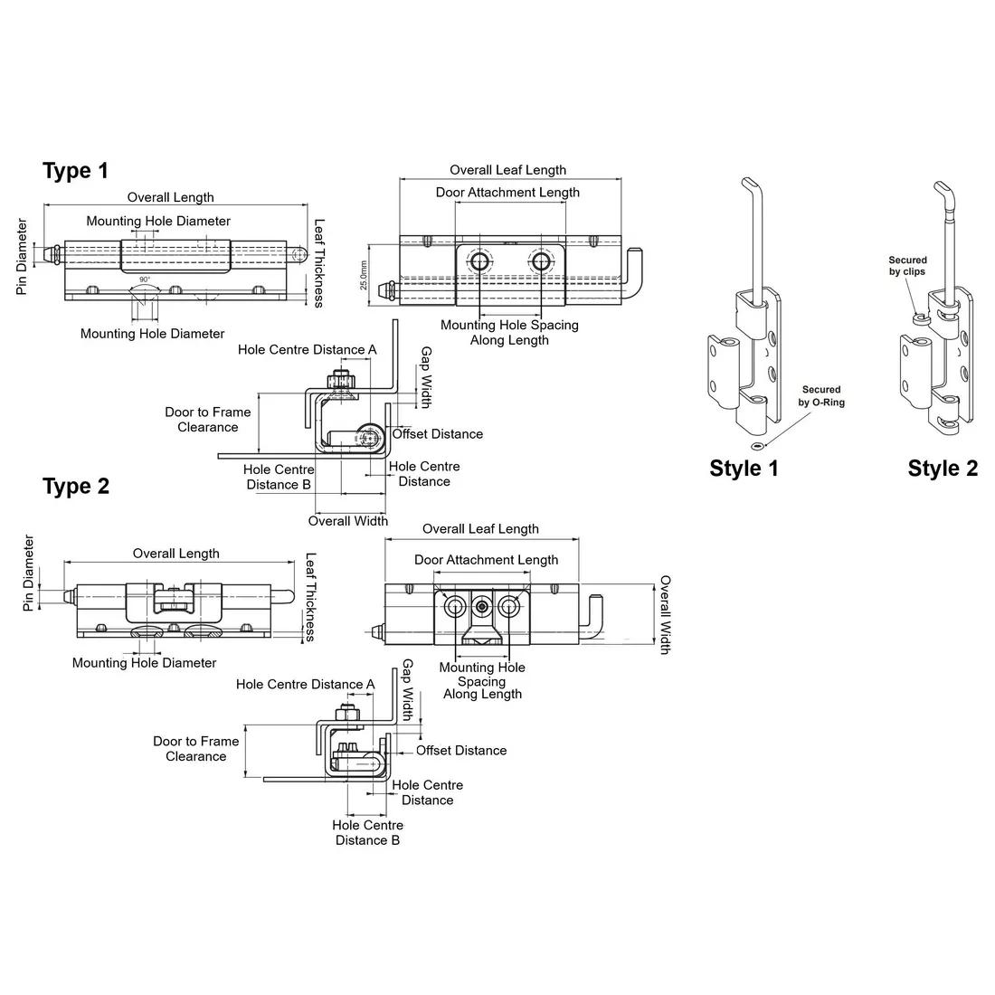 Item Code | Pin Diameter | Mounting Hole Spacing Along Length | Door Attachment Length | Material | Overall Width | Overall Length | Door to Frame Clearance | Length to Hole Center | Mounting Hole Diameter | Offset Distance | Leaf Thickness | Hinge Type | Stud Thread Size | Maximum Rotation | Mounting Method | Removability | Welded Part Material | Overall Leaf Length | DIN Pipe Specification | Type | Style | Request Quote |