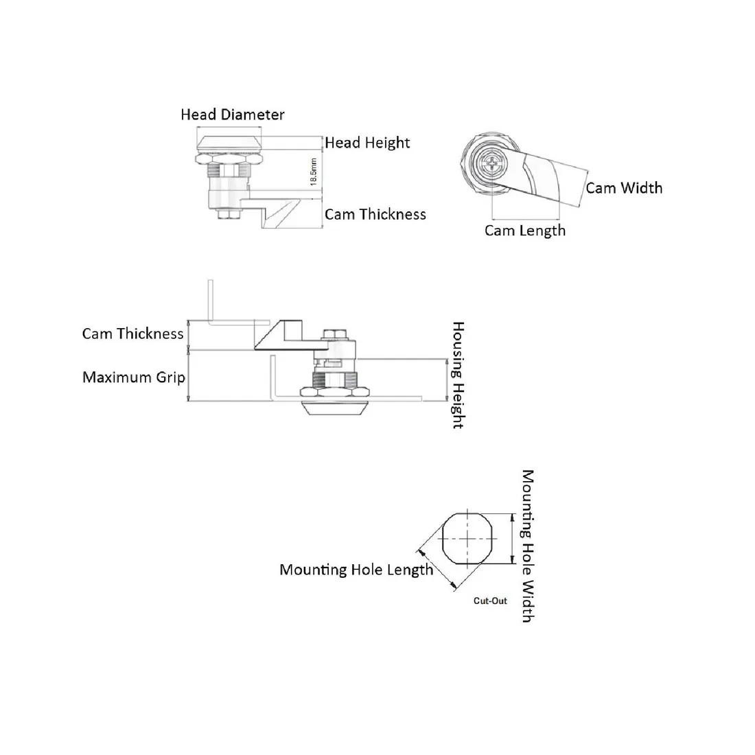 Item Code | Housing Height | Material | Overall Length | Head Diameter | Head Height | Finish | Seal Material | Head Style | Latch Style | Cam Length | Cam Thickness | Mounting Orientation | Housing Material | Handle Type | Mounting Hole Width | Mounting Hole Shape | Coating | Cam Width | Key Type | Mounting Hole Length | Driver Material | Color | Request Quote |