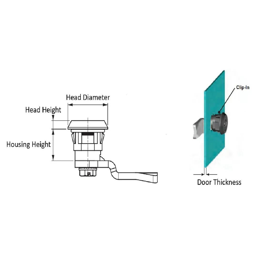 Item Code | Cam Material | Color | Housing Height | Material | Head Diameter | Minimum Compatible Door Thickness | Head Height | Mounting Hole Shape | Finish | Key Type | Head Style | Latch Style | Driver Material | Mounting Orientation | Housing Material | Handle Type | Maximum Compatible Door Thickness | Request Quote |