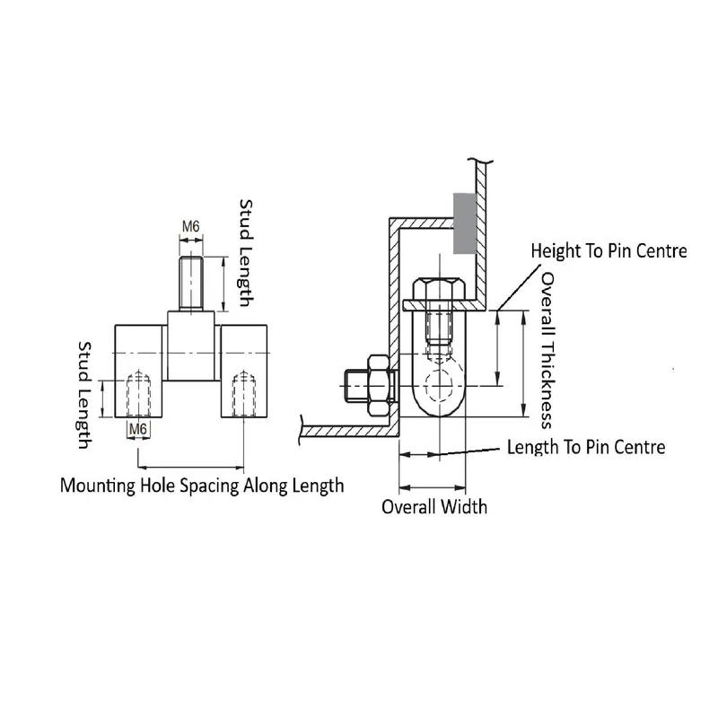 Item Code | Stud Length | Color | Mounting Orientation | Material | Overall Width | Overall Length | Overall Thickness | Pin Material | Finish | Body Material | Height To Pin Centre | Leaf Thickness | Mounting Method | Length To Pin Centre | Removability | Body Coating | Mount Style | Screw/Stud Size | Hinge Type | Mounting Hole Spacing Along Length A | Maximum Rotation | Request Quote |