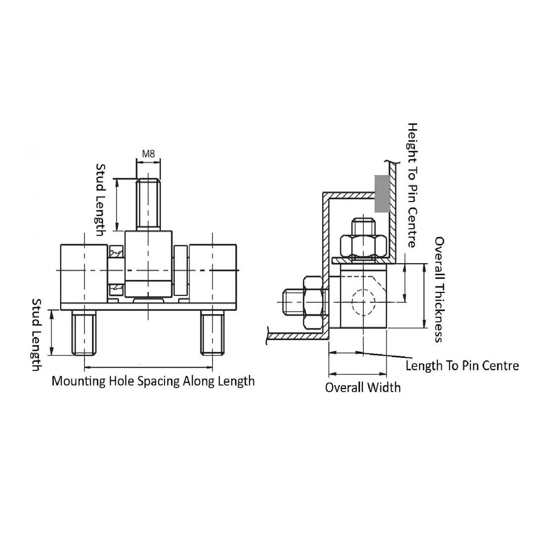 Item Code | Stud Length | Color | Mounting Orientation | Material | Overall Width | Overall Thickness | Mount Style | Body Material | Height To Pin Centre | Leaf Thickness | Mounting Method | Length To Pin Centre | Removability | Screw/Stud Size | Hinge Type | Mounting Hole Spacing Along Length A | Maximum Rotation | Finish | Mounting Hole Spacing Along Length | Body Coating | Request Quote |