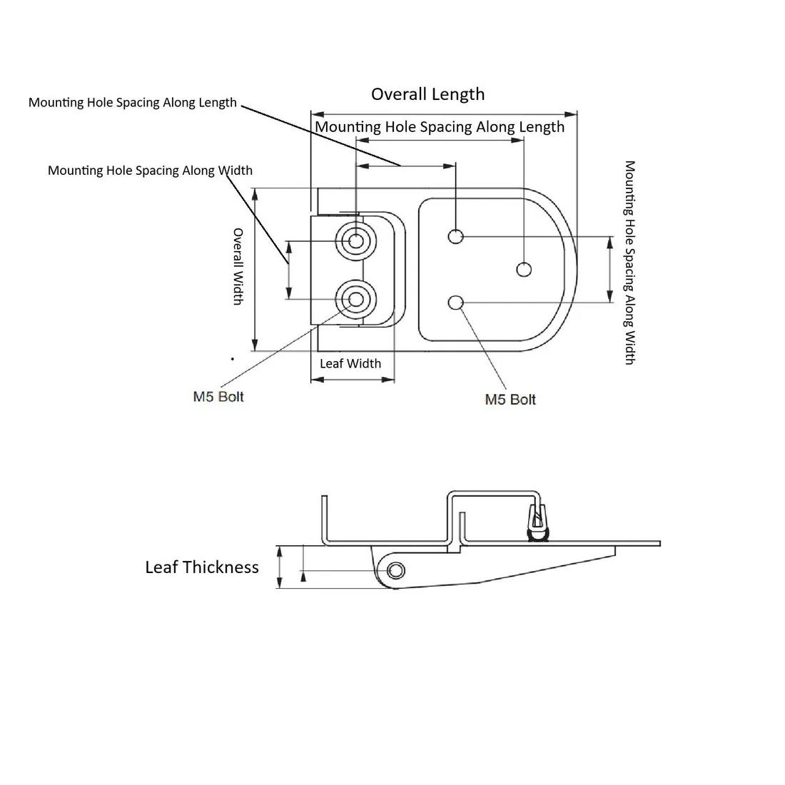 Item Code | Leaf Shape | Color | Mounting Hole Spacing Along Width A | Mounting Hole Spacing Along Length B | Mounting Orientation | Material | Overall Width | Overall Length | Overall Thickness | Mount Style | Pin Material | Mounting Hole Shape | Leaf Thickness | Mounting Hole Spacing Along Width B | Leaf Width | Mounting Method | Removability | Overall Height | Hinge Type | Mounting Hole Spacing Along Length A | Maximum Rotation | Request Quote |
