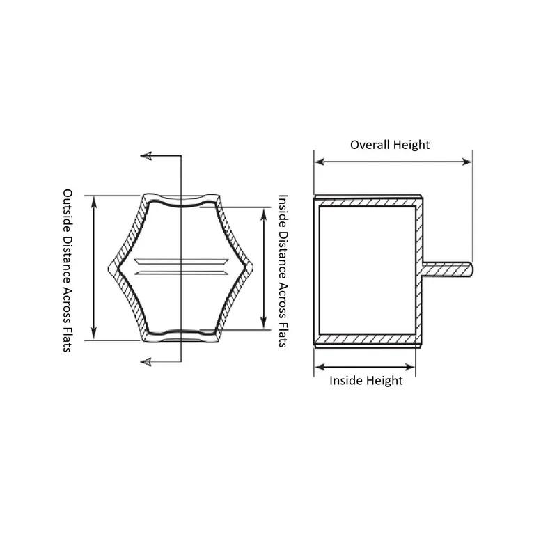 Item Code | Inside Height | Overall Height | Outside Distance Across Flats | Inside Distance Across Flats | Color | Thread Size | Material | Request Quote |