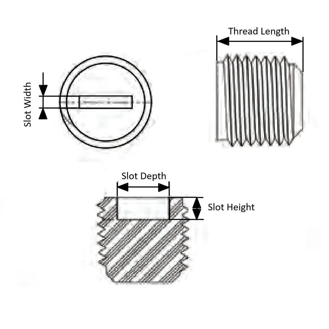 Item Code | Slot Depth | Color | Slot Width | Slot Height | Thread Length | Thread Size | Material | Request Quote |