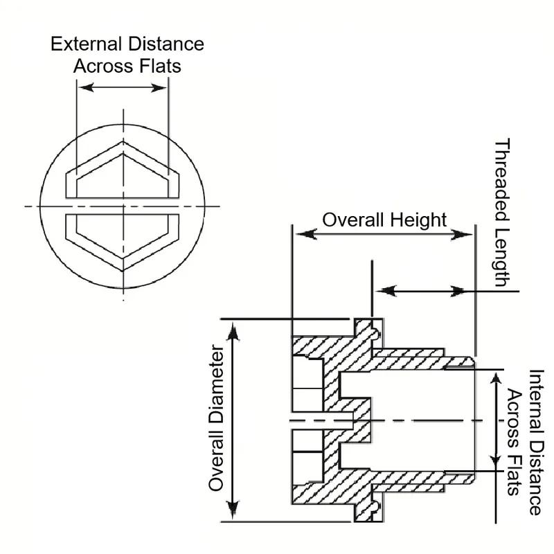 Item Code | Internal Distance Across Flats | Threaded Length | Overall Height | Maximum Operating Temperature | Color | External Distance Across Flats | Minimum Operating Temperature | Thread Size | Material | Overall Diameter | Request Quote |