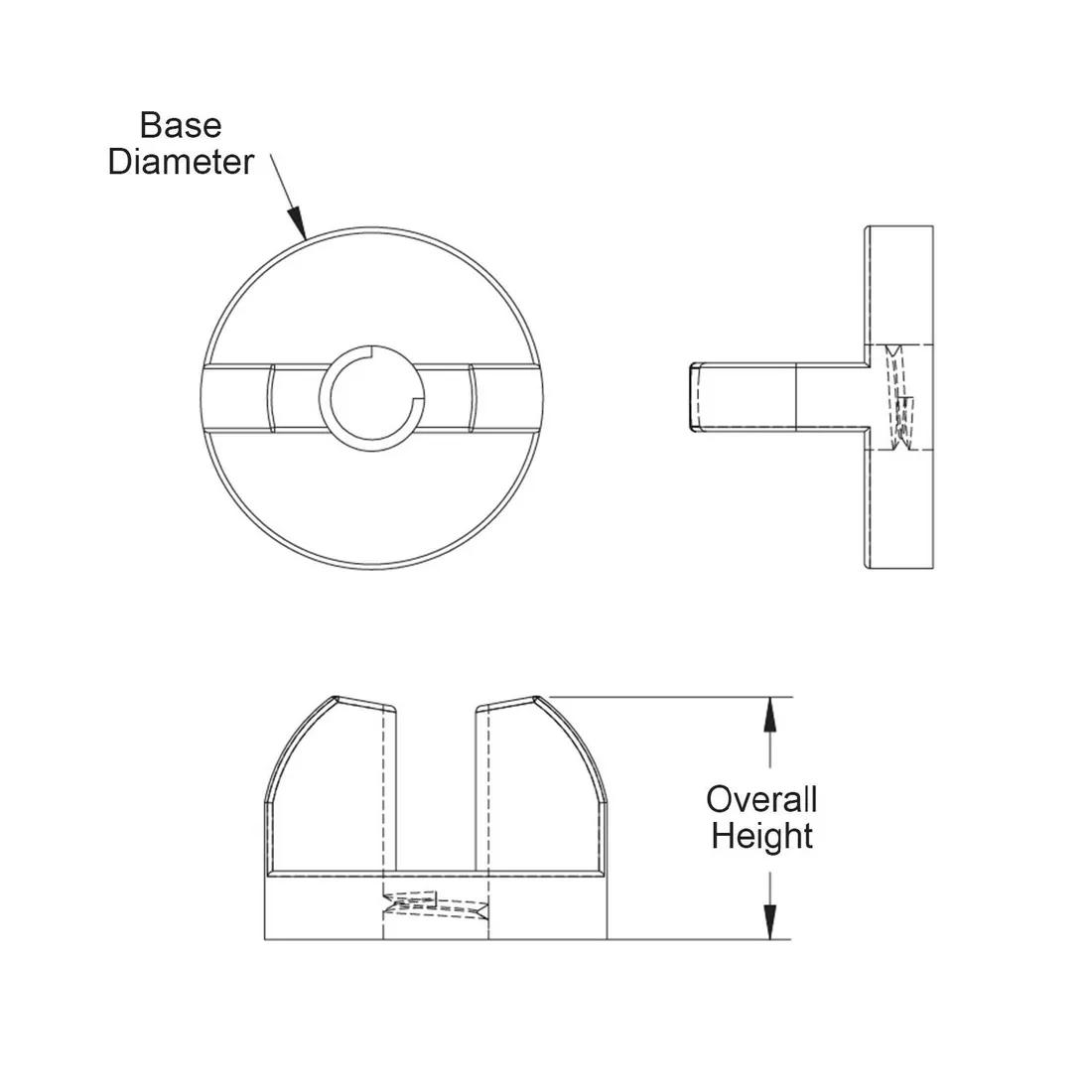 Item Code | Color | Base Diameter | Overall Height | Thread Size | Material | Request Quote |