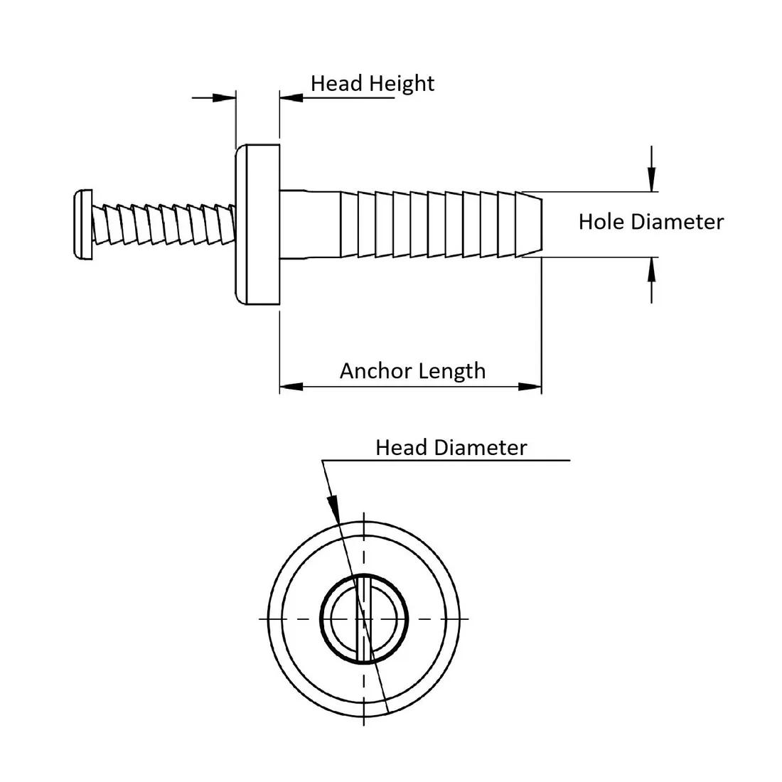 Item Code | Color | Hole Diameter | Anchor Length | Head Diameter | Head Height | Pin Material | Minimum Operating Temperature | Maximum Operating Temperature | Request Quote |