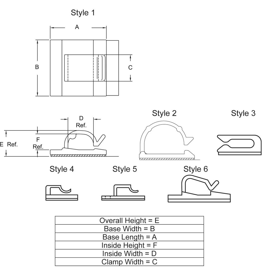 Item Code | Color | Inside Height | Accessory Type | Material | Overall Width | Overall Length | Base Width | Overall Height | Inside Width | Material Flammability Standard | Mounting Method | Inside Length | Maximum Compatible Cable Diameter | Base Length | Cord Holder Width | Adjustability | Adhesive Material | Base Material | Depth | Fitting Style | Height | Clip Width | Saddle Type | Base Height | Clamp Height | Adhesive Type | Design | Type | Maximum Material Thickness | Request Quote |