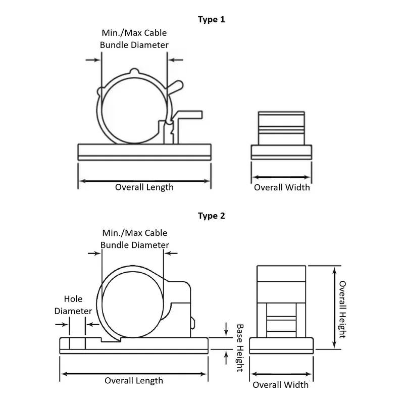 Item Code | Maximum Cable Bundle Diameter | Color | Hole Diameter | Material | Overall Length | Style | Material Flammability Standard | Mounting Method | Minimum Cable Bundle Diameter | Overall Width | Design | Type | Base Height | Overall Height | Request Quote |