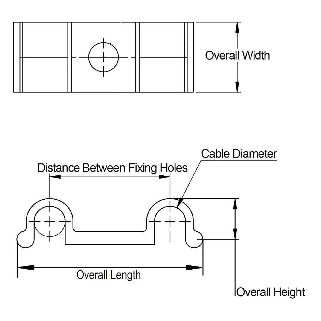 Item Code | Mounting Method | Color | Hole Diameter | Maximum Compatible Cable Diameter | Cable Diameter | Overall Height | Maximum Operating Temperature | Adjustability | Minimum Operating Temperature | Thread Size | Material | Overall Width | Distance Between Fixing Holes | Overall Length | UL/CSA Description | Length to Hole Center | Base Width | Base Length | Request Quote |