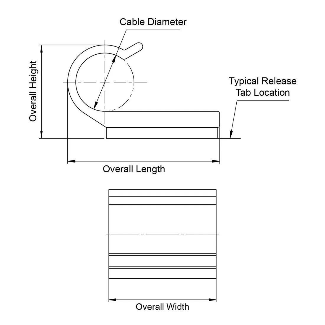 Item Code | Mounting Method | Color | Maximum Material Thickness | Overall Width | Base Width | Adhesive Material | Maximum Compatible Cable Diameter | Overall Height | Maximum Operating Temperature | Minimum Operating Temperature | Material | Overall Length | UL/CSA Description | Base Length | Style | Cable Diameter | Request Quote |
