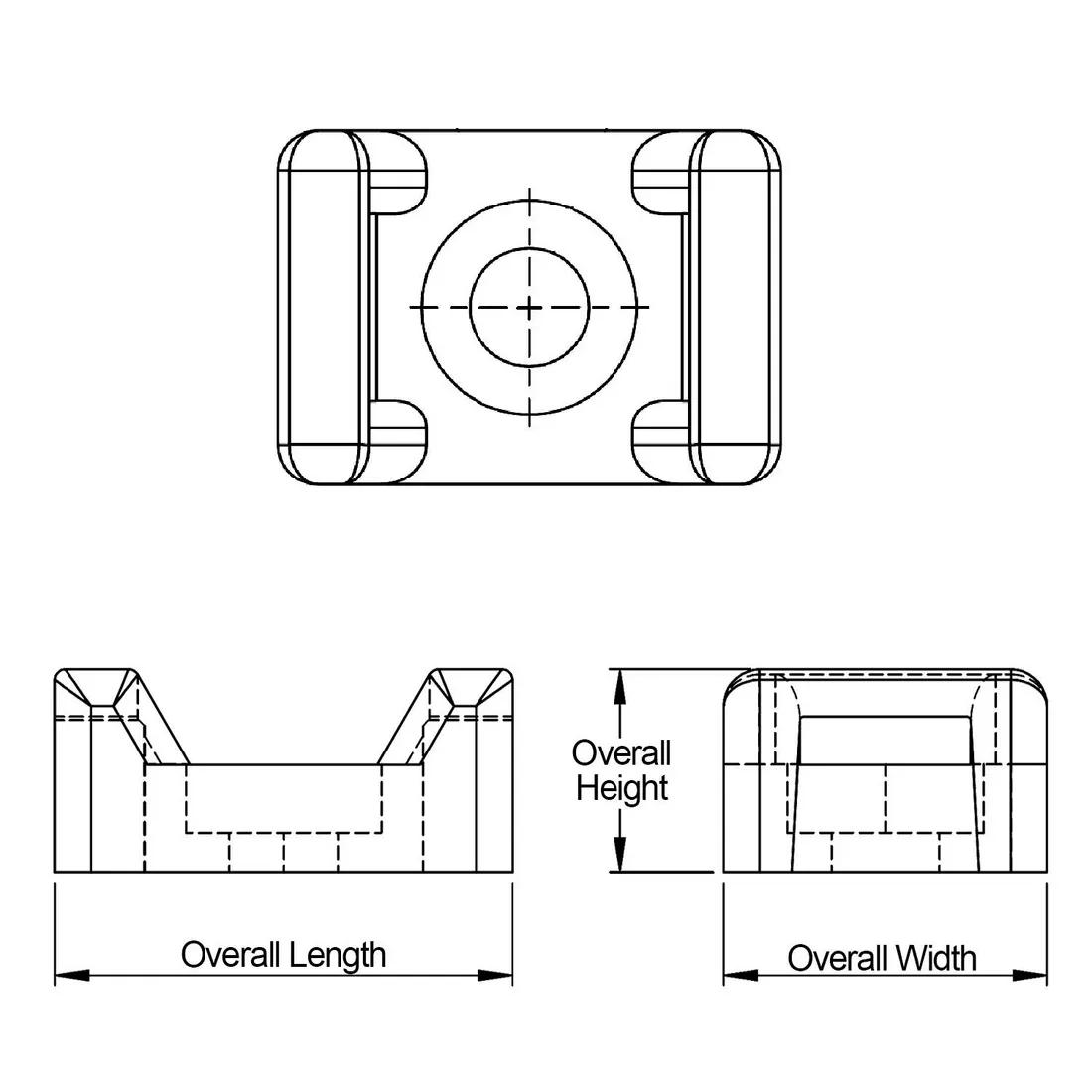 Item Code | Color | Material | Overall Width | Overall Height | Material Flammability Standard | Mounting Method | Minimum Compatible Cable Tie Width | Screw Size | Maximum Compatible Cable Tie Width | Hole Diameter | Overall Length | UL/CSA Description | Style | Outside Diameter | Mounting Hole Diameter | Thread Size | Cable Diameter | Cable Width | Request Quote |