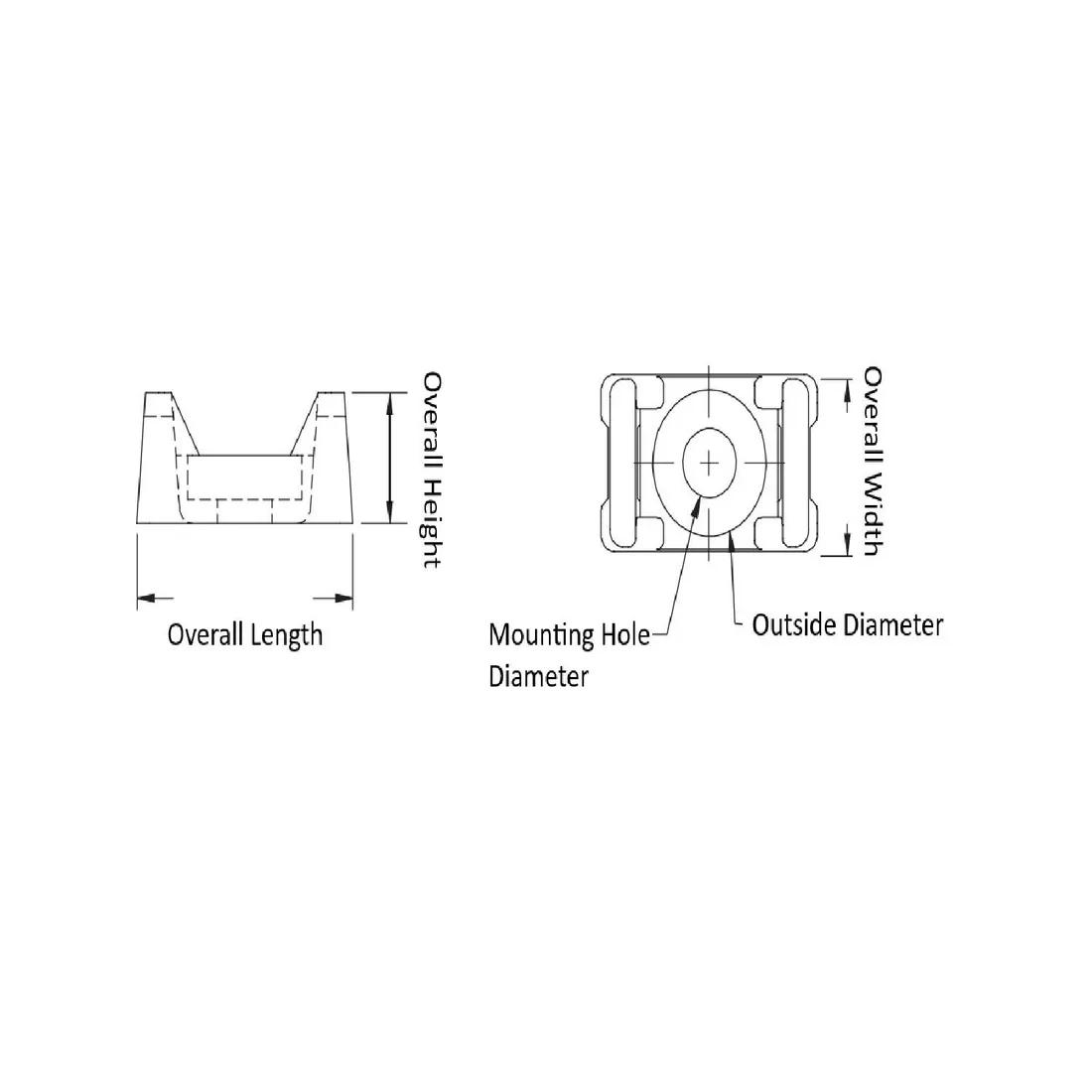 Item Code | Color | Material | Overall Width | Mounting Hole Diameter | Material Flammability Standard | Mounting Method | Maximum Compatible Cable Tie Width | Hole Diameter | Overall Length | UL/CSA Description | Style | Outside Diameter | Overall Height | Cable Width | Request Quote |