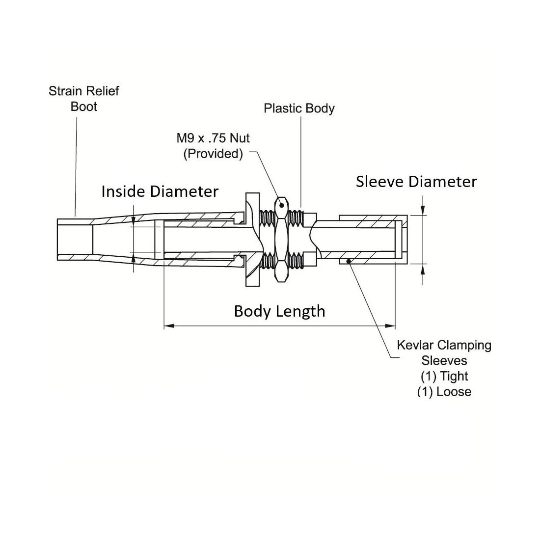 EFA52-02-ASS | UL94 V-0 | Black | Round | Nylon 6 | 35.0 mm | - | M9 x 0.75 | 3.5 | 2.0 mm Jacketed Fiber | 7.3 mm | |