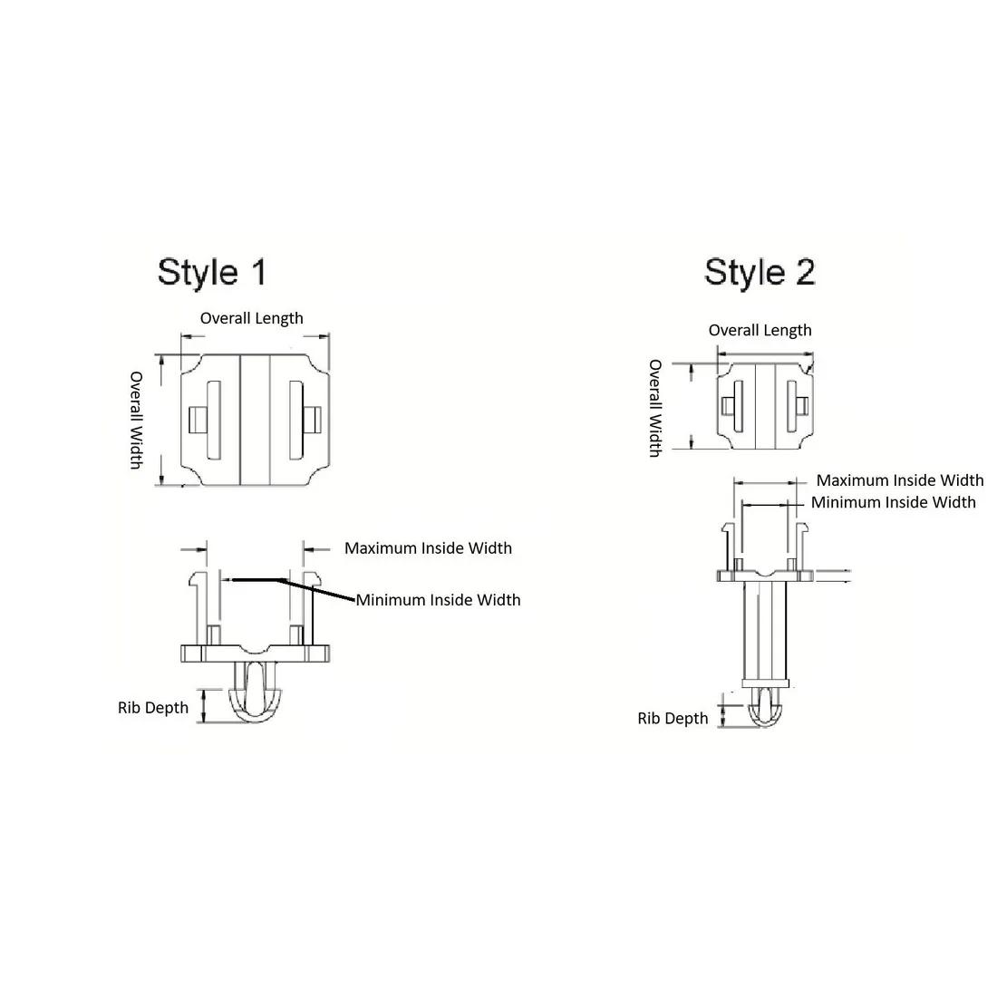 Item Code | Color | Hole Diameter | Material | Overall Width | Overall Length | Rib Depth | Min. Inside Width | Max. Inside Width | Style | Panel Thickness | Overall Height | Type | Material Flammability Standard | Mounting Method | Base Thickness | Leg Length | Head Inside Diameter | Base Width | Base Length | Rib Height | Spacer Length | Request Quote |