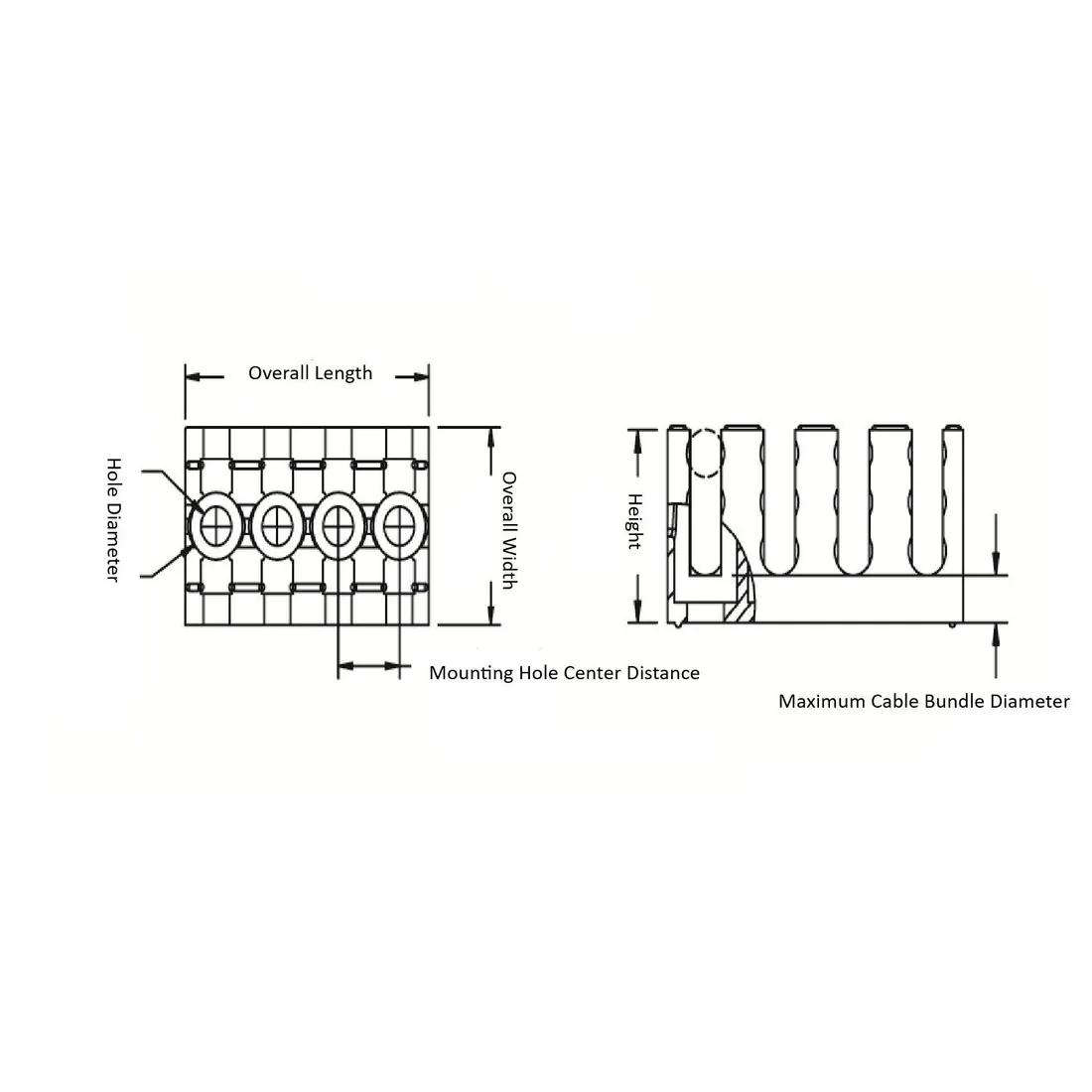 Item Code | Maximum Cable Bundle Diameter | Color | Hole Diameter | Material | Overall Width | Overall Length | Head Inside Diameter | Mounting Hole Center Distance | Height | Type | Material Flammability Standard | Screw Size | Request Quote |