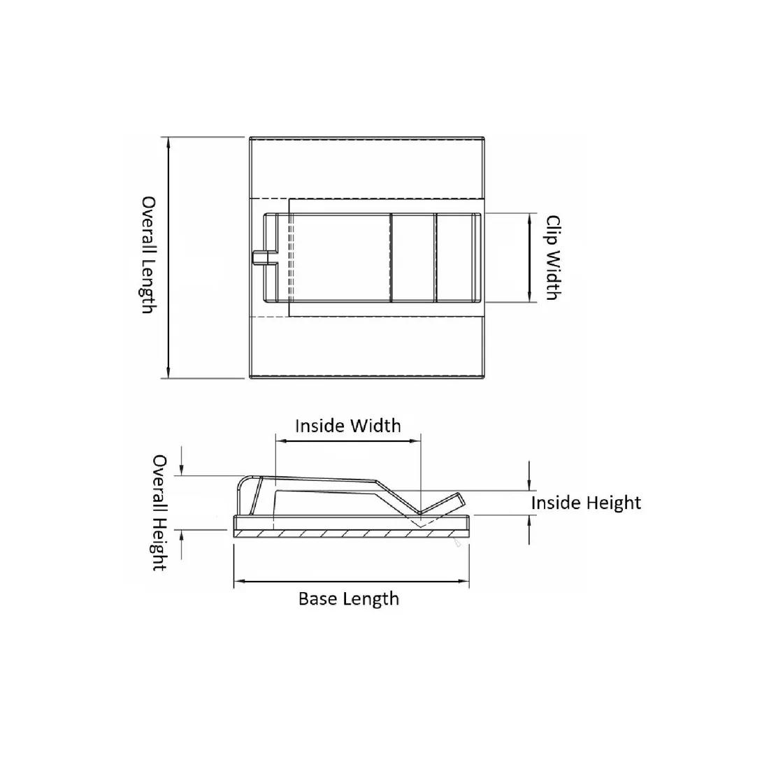 Item Code | Color | Inside Height | Adhesive Type | Overall Length | Base Length | Overall Height | Inside Width | Material Flammability Standard | Mounting Method | Material | Base Material | Clip Width | Type | Request Quote |
