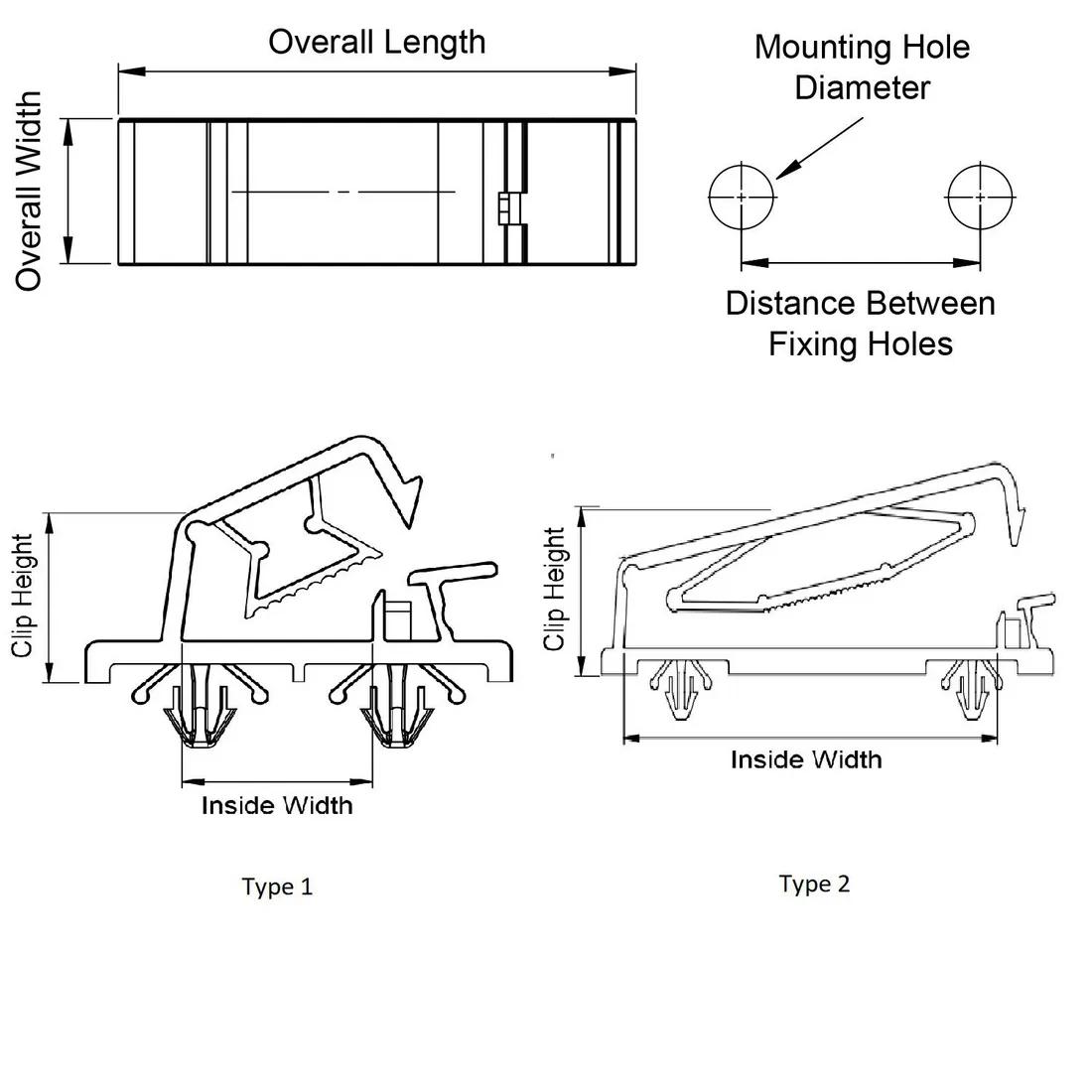 Item Code | Compatible Hole Size | Color | Maximum Hole Diameter | Material | Overall Length | Maximum Panel Thickness | Mounting Hole Diameter | Inside Length | Type | Inside Width | Mounting Method | Overall Width | Number of Conductors | Distance Between Fixing Holes | Base Length | Minimum Panel Thickness | Cable Width | Clip Height | Request Quote |