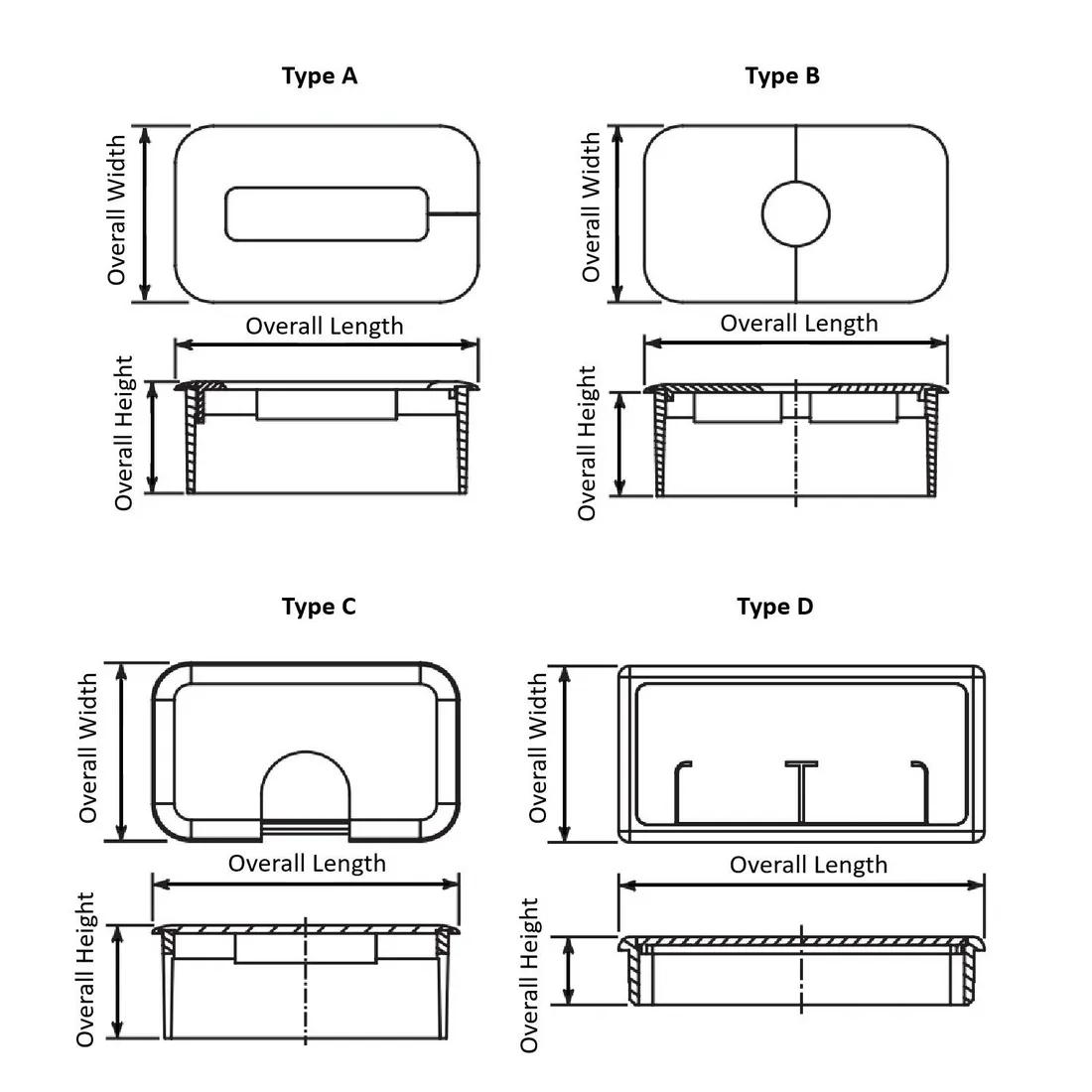Item Code | Color | Material | Overall Width | Overall Length | Surface Finish | Mounting Hole Width | Style | Overall Height | Type | Mounting Hole Length | Request Quote |