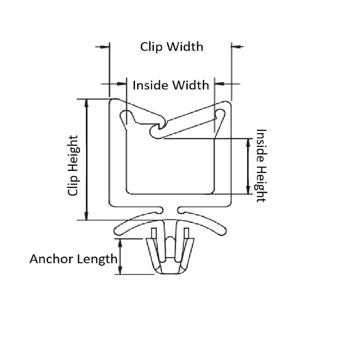Item Code | Color | Inside Height | Material | Anchor Length | Clip Height | Clip Width | Inside Width | Material Flammability Standard | Request Quote |