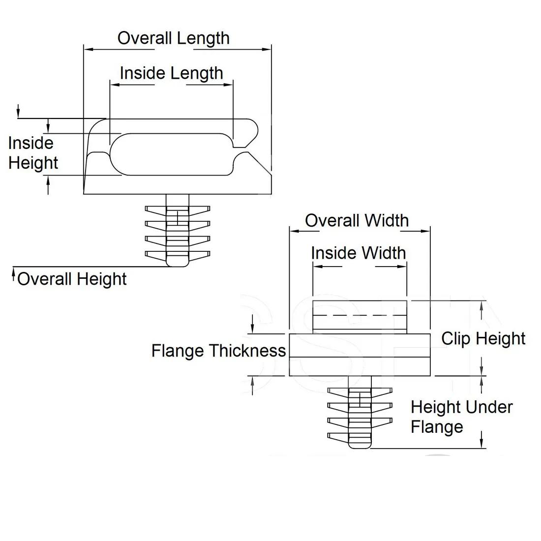 Item Code | Inside Height | Overall Width | Maximum Panel Thickness | Mounting Hole Diameter | Fitting Style | Clip Depth | Flange Thickness | Height Under Flange | Maximum Operating Temperature | Clip Width | Inside Width | Material Flammability Standard | Saddle Type | Color | Standoff Height | Minimum Operating Temperature | Material | Overall Length | UL/CSA Description | Inside Length | Inside Depth | Minimum Panel Thickness | Overall Height | Clip Height | Compatible Hole Diameter | Mount Type | Request Quote |