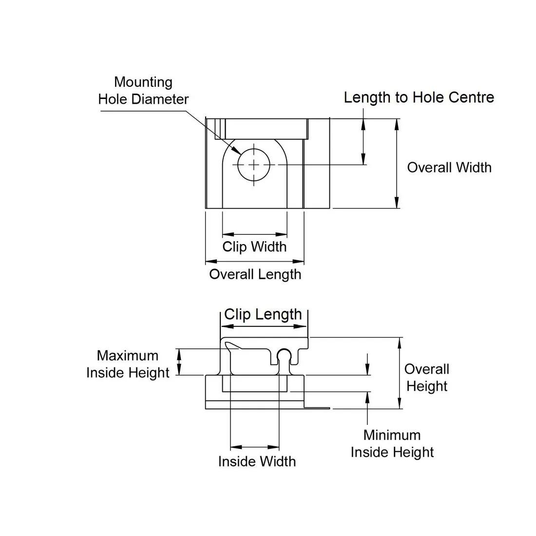 Item Code | Base Opening Height | Inside Height | Hole Diameter | Overall Width | Mounting Hole Diameter | Base Height | Mounting Hole Center Distance | Maximum Operating Temperature | Mount Type | Inside Width | Material Flammability Standard | Saddle Type | Color | Base Opening Width | Minimum Operating Temperature | Material | Base End to Arm End Length | Thread Size | Overall Length | UL/CSA Description | Length to Hole Center | Base Width | Minimum Inside Diameter | Minimum Inside Diameter | Base Length | Overall Height | Clip Height | Clip Width | Type | Adhesive Material | Screw Size | Request Quote |
