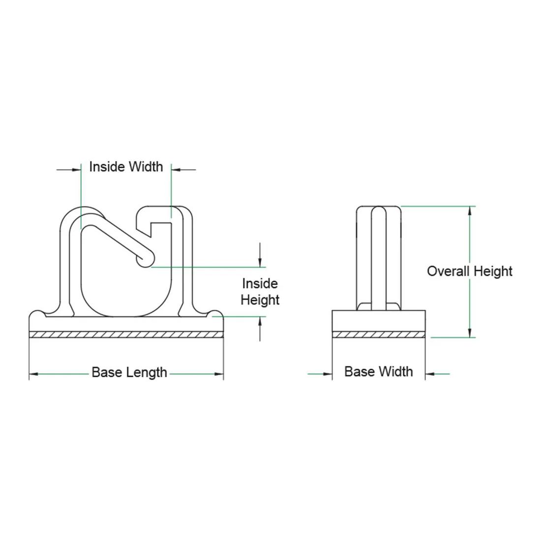 Item Code | Adhesive Tape Thickness | Inside Width | Color | Inside Height | Material | Overall Width | Length to Hole Center | Adhesive Material | Style | Overall Height | Overall Length | UL/CSA Description | Minimum Inside Diameter | Minimum Inside Diameter | Request Quote |