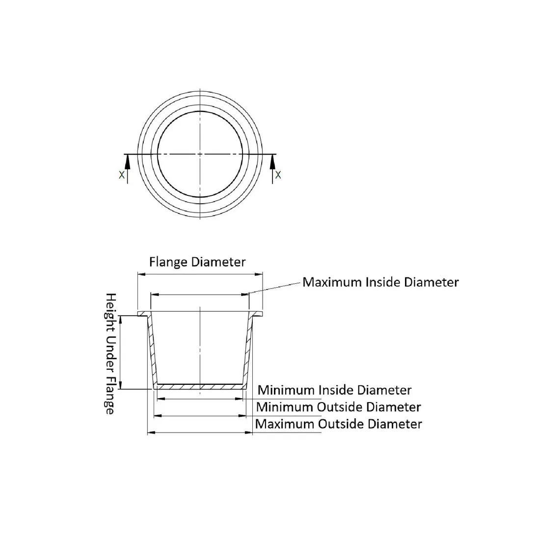 Item Code | Color | Material | Minimum Inside Diameter | Minimum Outside Diameter | Flange Diameter | Maximum Outside Diameter | Maximum Temperature | Maximum Inside Diameter | Height Under Flange | Request Quote |
