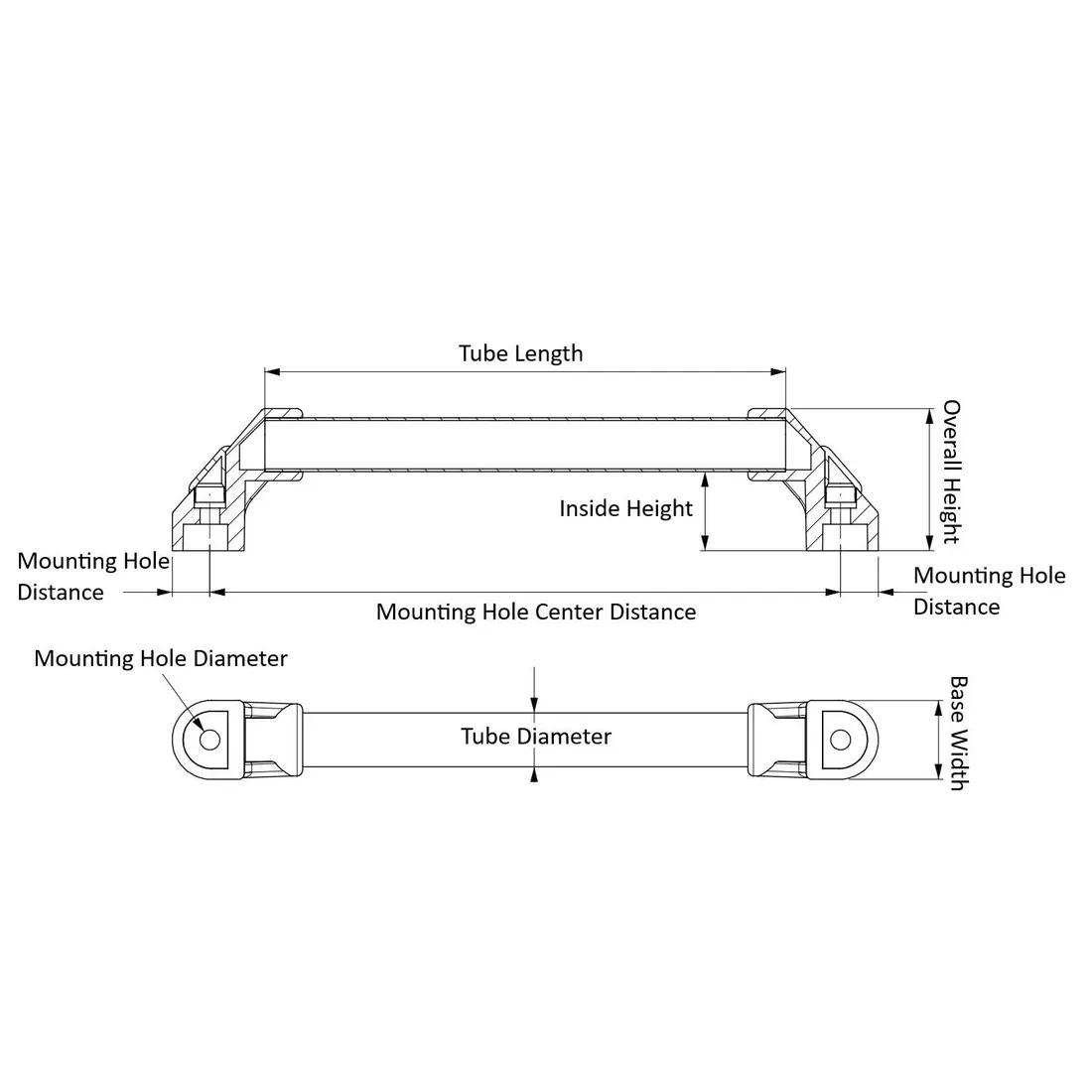 Item Code | Color | Inside Height | Tube Diameter | Thread Size | Overall Length | Handle Material | Mounting Hole Diameter | Handle Type | Handle Finish | Bar End Material | Mounting Hole Center Distance | Overall Height | Base Width | Tube Length | Mounting Hole Distance | Handle Shape | Mount Type | Request Quote |