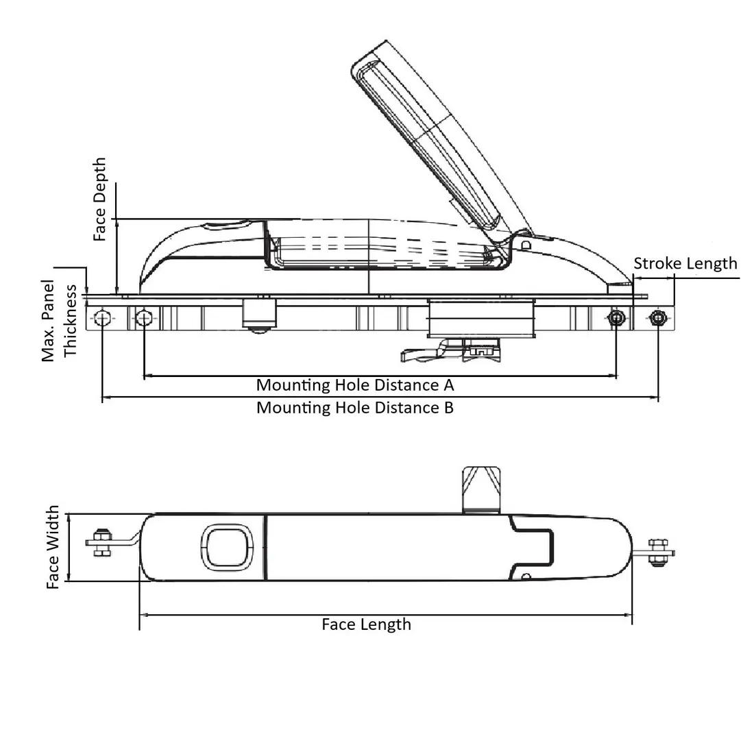 Item Code | Dimensiones del recorte | Longitud de carrera | Materiales | Grosor máximo del panel | Material de tapa de polvo | Acabado | Key Type | Profundidad de cara | Material del sello | Lock Type | Face Length | Ancho de la cara | Distancia entre los orificios de fijación | Solicitar cotización |